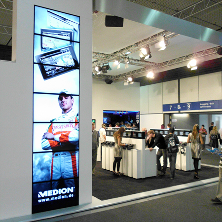 Im Bereich des Messebaus werden so zum Beispiel großflächig Werbebotschaften übermittelt. Außerdem werden für Kunst- und Lichinstallationen häufig Sonderformate durch LED Technologie verwendet, denn diese sind flexibel auf die jeweilige Installation skalierbar.
