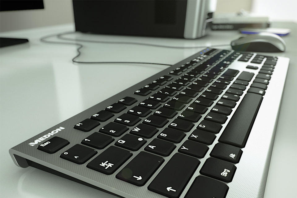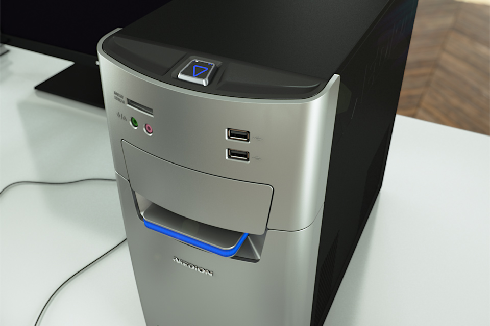 Im Auftrag der Design Abteilung der MEDION AG, sollten verschiedene Entwürfe eines Computer Gehäuses an einem Arbeitsplatz dargestellt werden.