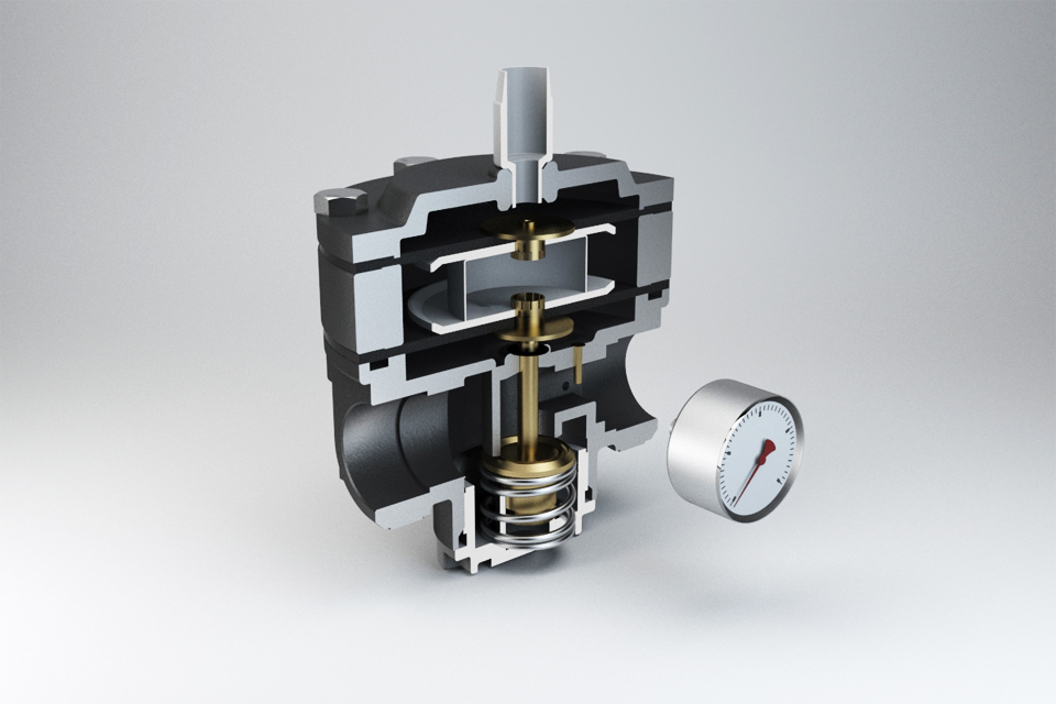 Im Auftrag der Agentur RSB Design e.K. wurden für die Firma AirCom GmbH Animationen erstellt, die den Funktionsablauf von verschiedenen Druckreglern erläutern.